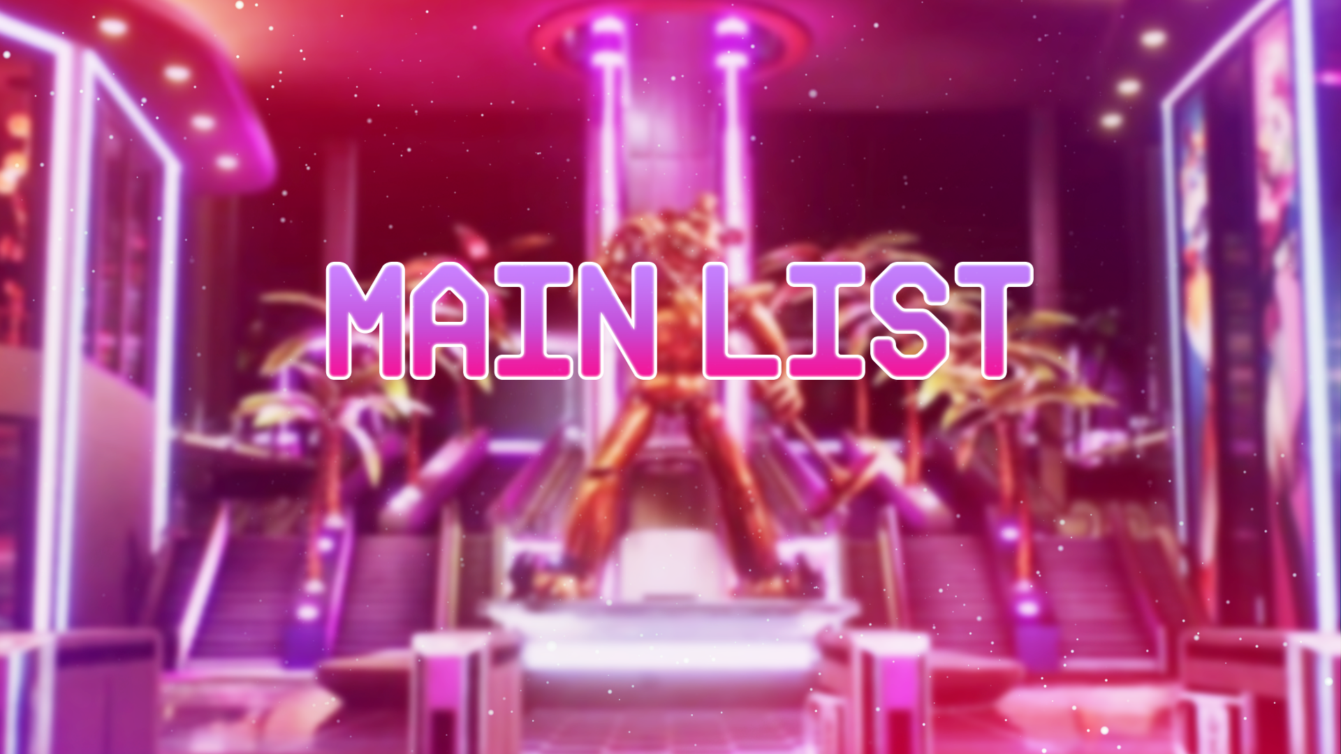 The MAIN LIST is the PRIMARY list created by the DLB MML team. The main determining factor for how high a placement is on this list is how much skill is required to overcome the challenge (ex. a skill-based mode). Other things are taken into account as well, however the main focus of this list is to rank based on skill.